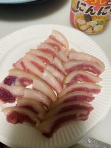 西表島ではイノシシは刺身やタタキといった様に、生食が通常の食べ方です笑